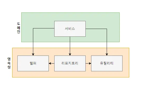 서비스에서는 필요한 비즈니스 로직을 수행하고, 도메인 엔티티의 현재 상태를 조회하거나 변경하기 위해 영속성 계층의 컴포넌트를 호출한다.