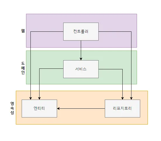 웹 계층은 도메인 계층에 의존하고, 도메인 계층은 영속성 계층에 의존하기 때문에 결국 데이터베이스에 의존하게 된다.