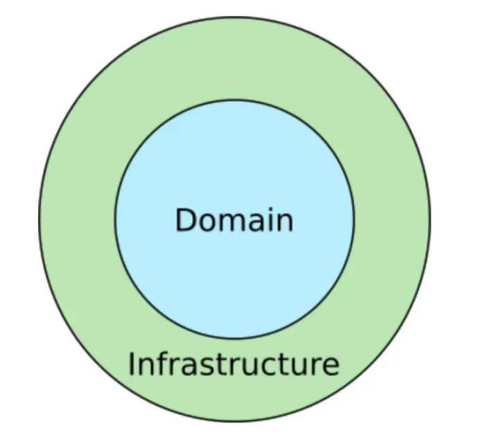 도메인 객체들은 근본적으로 서비스가 지니는 바운디드 컨텍스트 안에서 독립적인 로직을 가지고 있습니다. 영속성 계층, 혹은 메시지 큐와 같은 인프라는 결국 이러한 도메인의 상태를 저장하거나 전달하기 위해 존재할 뿐입니다. 즉, 도메인 객체들은 인프라에 의존하지 않아야 한다는 것입니다.